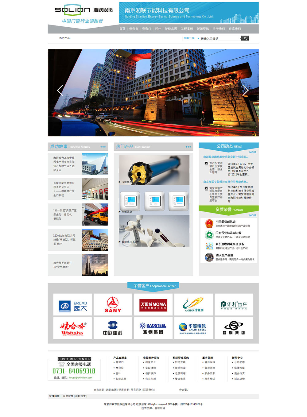 南京湘联节能科技有限公司是一家从事户外遮阳节能卷帘门窗、管状电机与相关控制系统的高科技民营企业。总部座落于长沙国家经济技术开发区,占地面积70多亩,建筑面积50000平方米,是目前国内同行业中**集科研、生产、销售、服务于一体的大型综合性高科技民营企业。