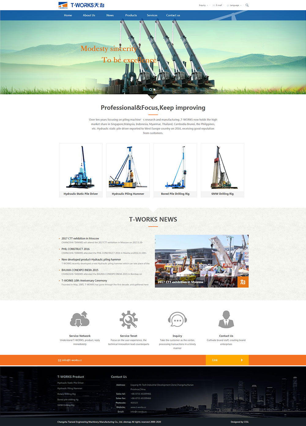 Changsha Tianwei Engineering Machinery Manufacturing Co., Ltd is a modern joint-stock private enterprise found in 2005, it is specialized in R&D and Manufacturing series of Hydraulic Static Pile Driver and other Piling Machinery such as Hydraulic piling