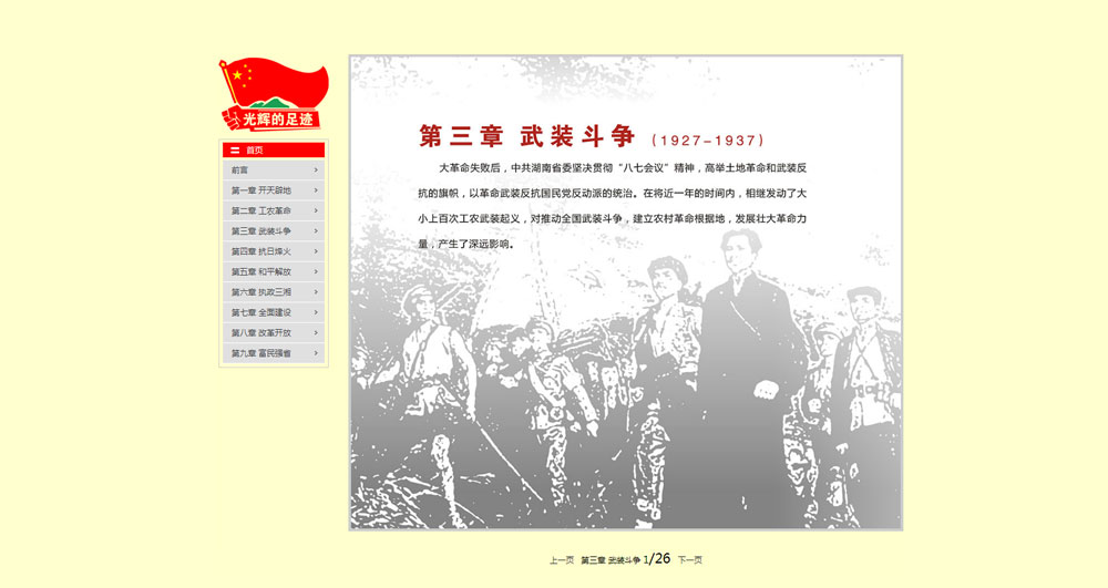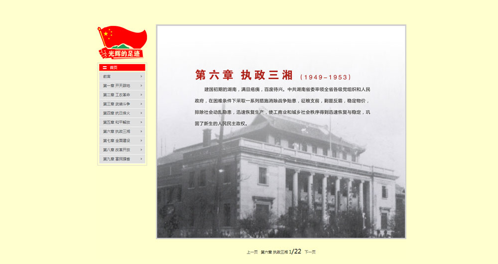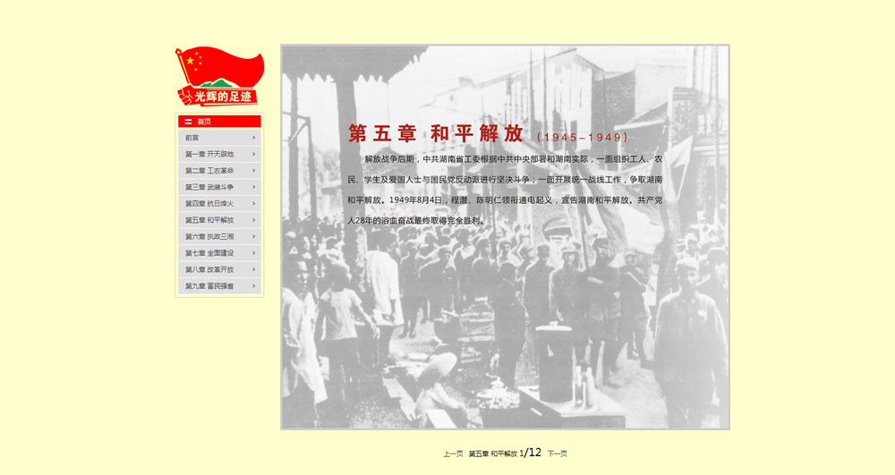 此次展览由省档案局、省文明办主办,长沙市轨道交通集团协办,湖南天闻地铁传媒有限公司承办,分为开天辟地、工农革命、武装斗争、抗日烽火、和平解放、执政三湘、全面建设、改革开放、富民强省9个部分,共展示档案图片253组,500多张。还有开国大典上毛泽东讲话、刘少奇在天华调查、全省学雷锋活动、省十一次党代会等珍贵音视频档案。其中大部分档案是******对外公布。
