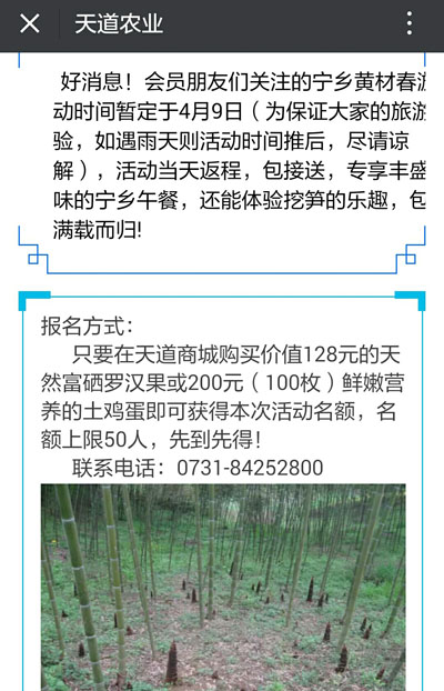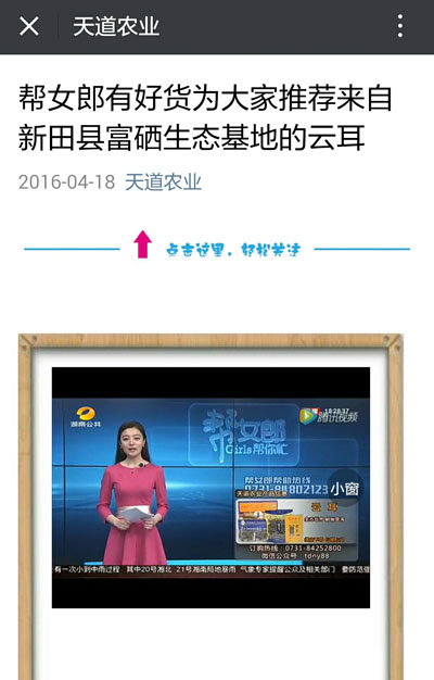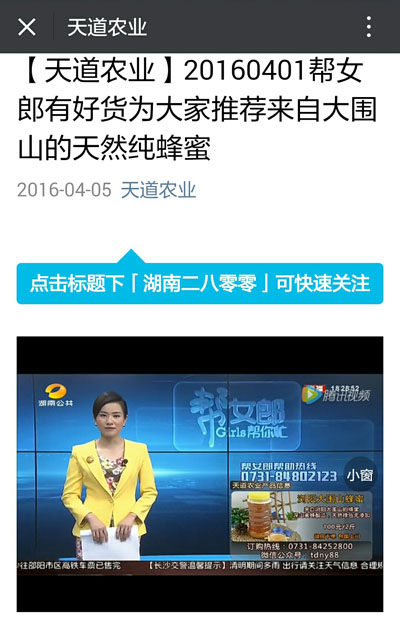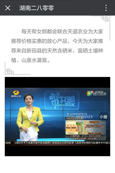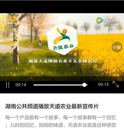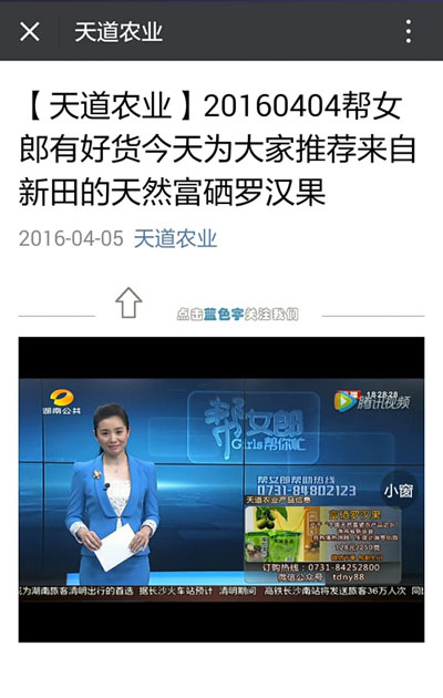 天道农业商城是湖南二八零零集团(股票代码:202793)委托我公司开发的微信分销商城。整合集团公司的优势资源,推广优质放心的农副产品,并通过微信朋友圈这一特殊媒介的相互推荐、分享,获得了裂变式的增长。