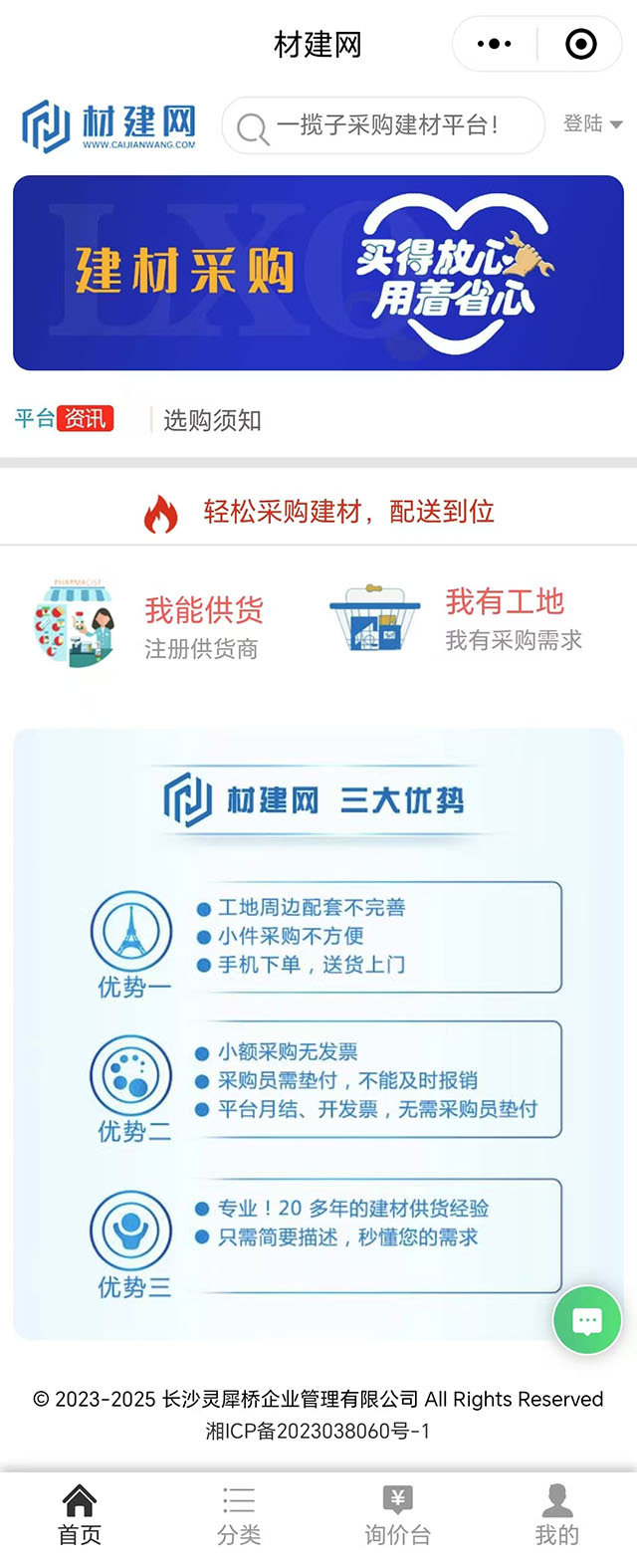 工地周边配套不成熟、小额采购零星/不便,采购员需垫付,还经常没发票等问题,定制开发此平台,适配公众号、小程序,无需安装,拿起手机就能下单,操作方便。