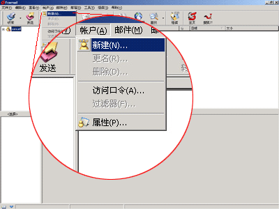 1、打开Foxmail,点击菜单栏中的“帐号”,在下拉菜单中选择“新建”,界面如下: